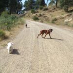 Siempre con agua a disposición de nuestros compis de 4 patas, hicimos una ruta de 12,5 km. comenzando en la estación de tren de Las Navas del Marqués, llegando al embalse de la Ciudad Ducal, donde pudimos refrescarnos y dejar a los perretes chapotear en el agua todo lo que quisieron.