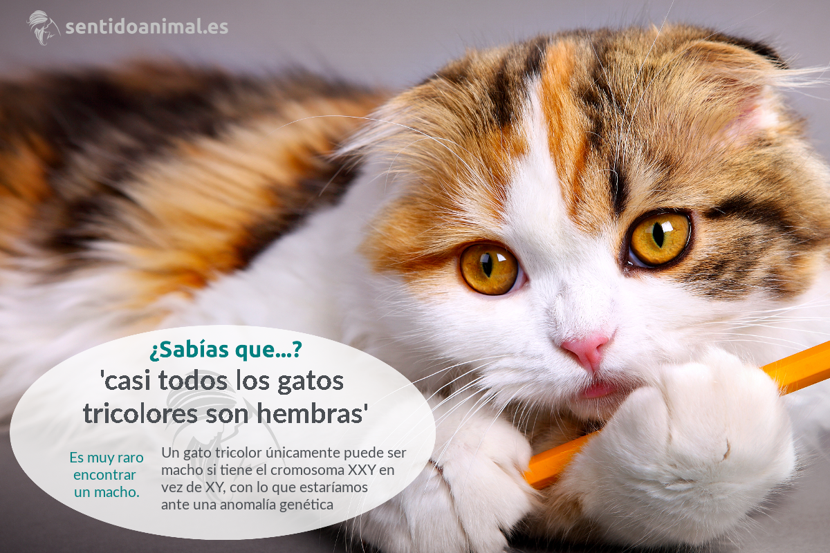 La mayoría de los gatos tricolores no son gatos, sino gatas. ¿Por qué? No es porque las gatas sean más coquetas y quieran estar más bonitas combinando colores 😉 Sino por los cromosomas sexuales X e Y de los machos y las hembras. ¿Qué tienen que ver estos cromosomas felinos con la preciosa anomalía cromática de los gatos tricolores? Lo vemos en detalle en el artículo de hoy.