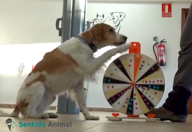 Para una actividad de Intervenciones Asistidas con Animales, nos viene fenomenal que los perretes tiren la ruleta 🙂