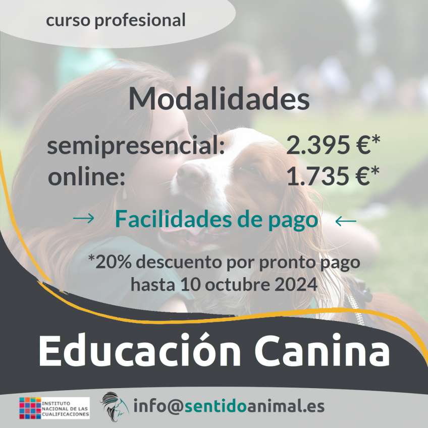 El curso puede realizarse por bloques, por lo que puedes realizar el curso completo o hacer cada uno de los 3 bloques junto con sus prácticas o de manera exclusivamente online, de manera independiente. Sin embargo, no podrás realizar el bloque de modificación de conducta si no tienes una base previa de adiestramiento canino.