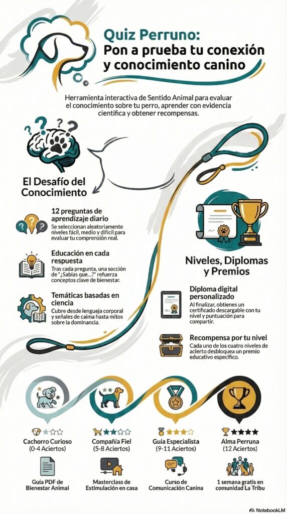 - Cachorro Curioso (0-4 aciertos): estás empezando el camino, pero lo más importante ya lo tienes: las ganas de aprender.